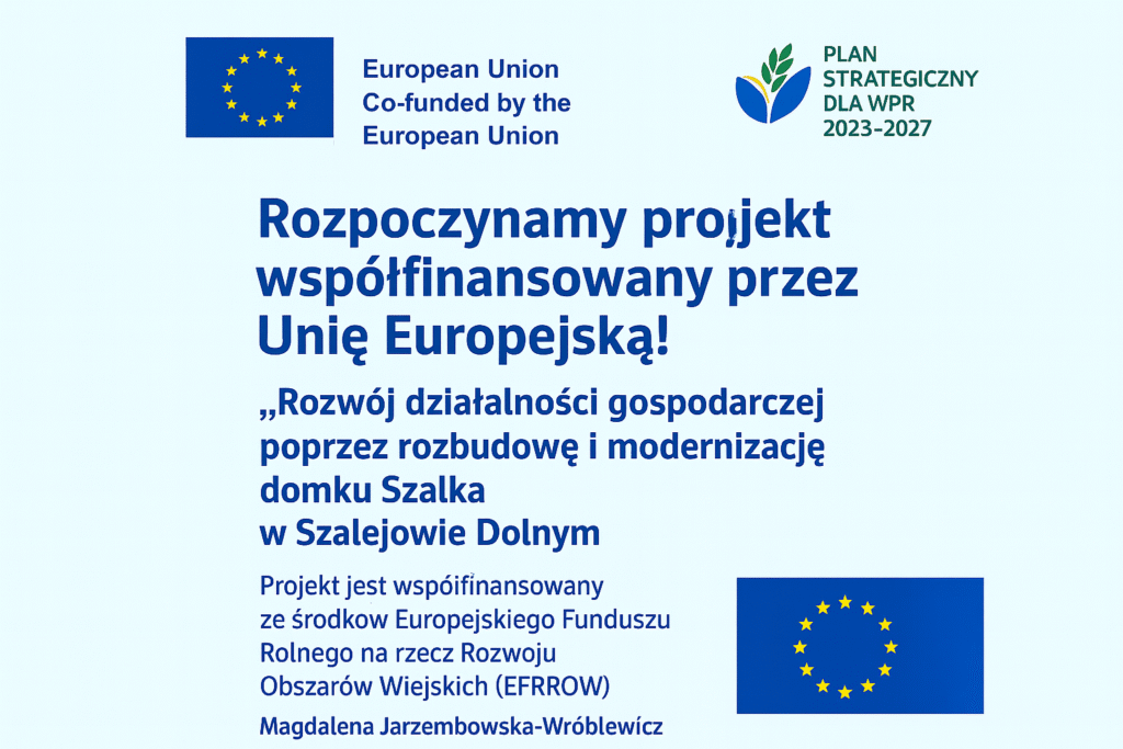 Dzięki dofinansowaniu z funduszy Unii Europejskiej, w Szalejówce realizujemy szereg inwestycji, które podnoszą komfort pobytu naszych gości, wprowadzają nowoczesne technologie i promują działania ekologiczne. Zakres prac obejmuje między innymi:
